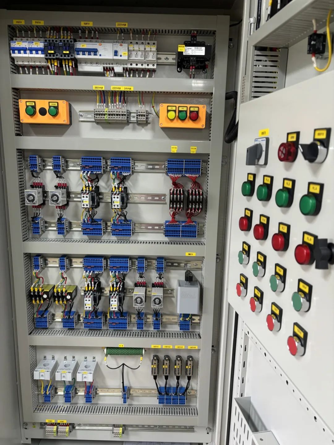 培訓室內配套設置了4臺PLC教學版智能自動控制模板、4臺成品動力柜、4臺成品照明柜、4套直流電機調速控制線路、5套三相電機正反轉接線設備、5套三相水泵浮球控制設備及各種適用于初級、中級機電認證高端設備。未來,該培訓室將開放給公司機電業(yè)務線條員工日常訓練使用,有助于員工培養(yǎng)“執(zhí)著專注、精益求精、追求進步”的工匠精神。