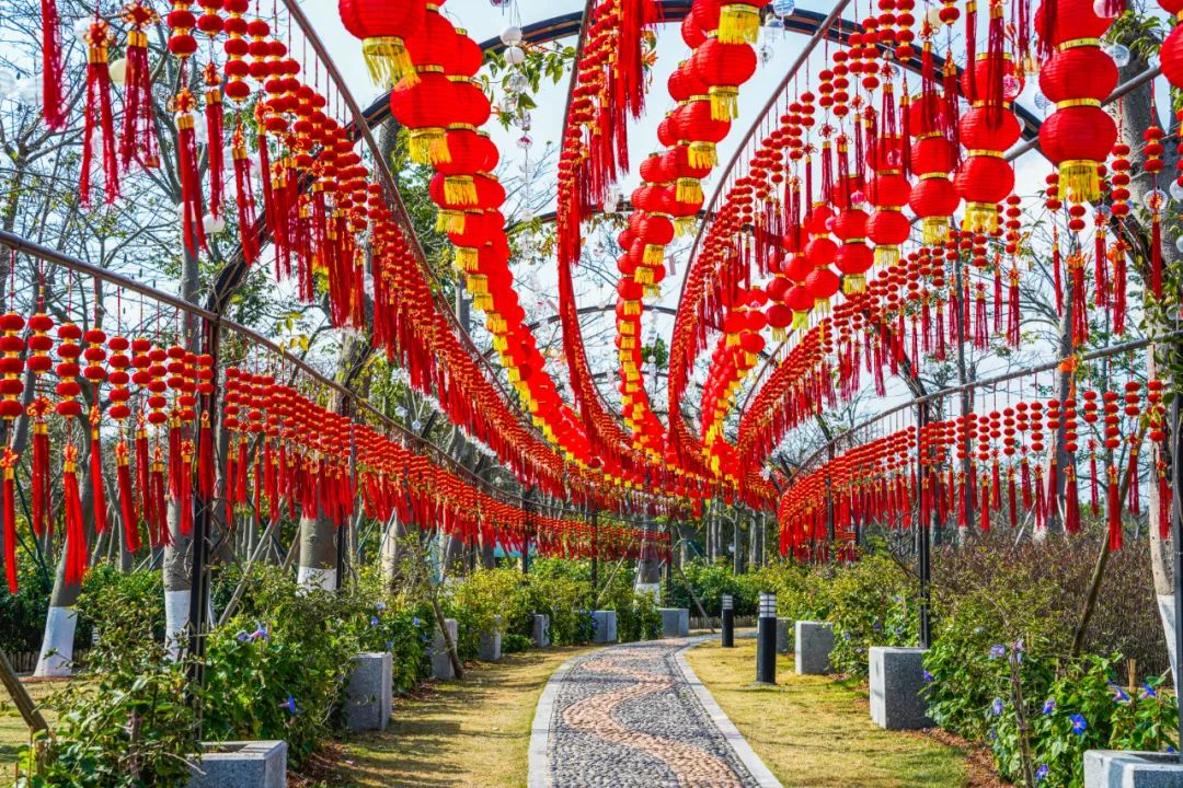 天沐河賽艇公園已悄悄“喜上樹梢”,火紅的燈籠串兒相繼攀上枝頭;天沐河兩岸的綠水青山,在陽光與微風(fēng)中歲月靜好;通往小橫琴山的山體步道也披上嶄新的“紅袍”,靜候登山游人們的到來;花海長廊的風(fēng)鈴長廊趁此新春良辰,煥然一新,喜慶的燈籠與悅耳的風(fēng)鈴在風(fēng)中共同起舞……