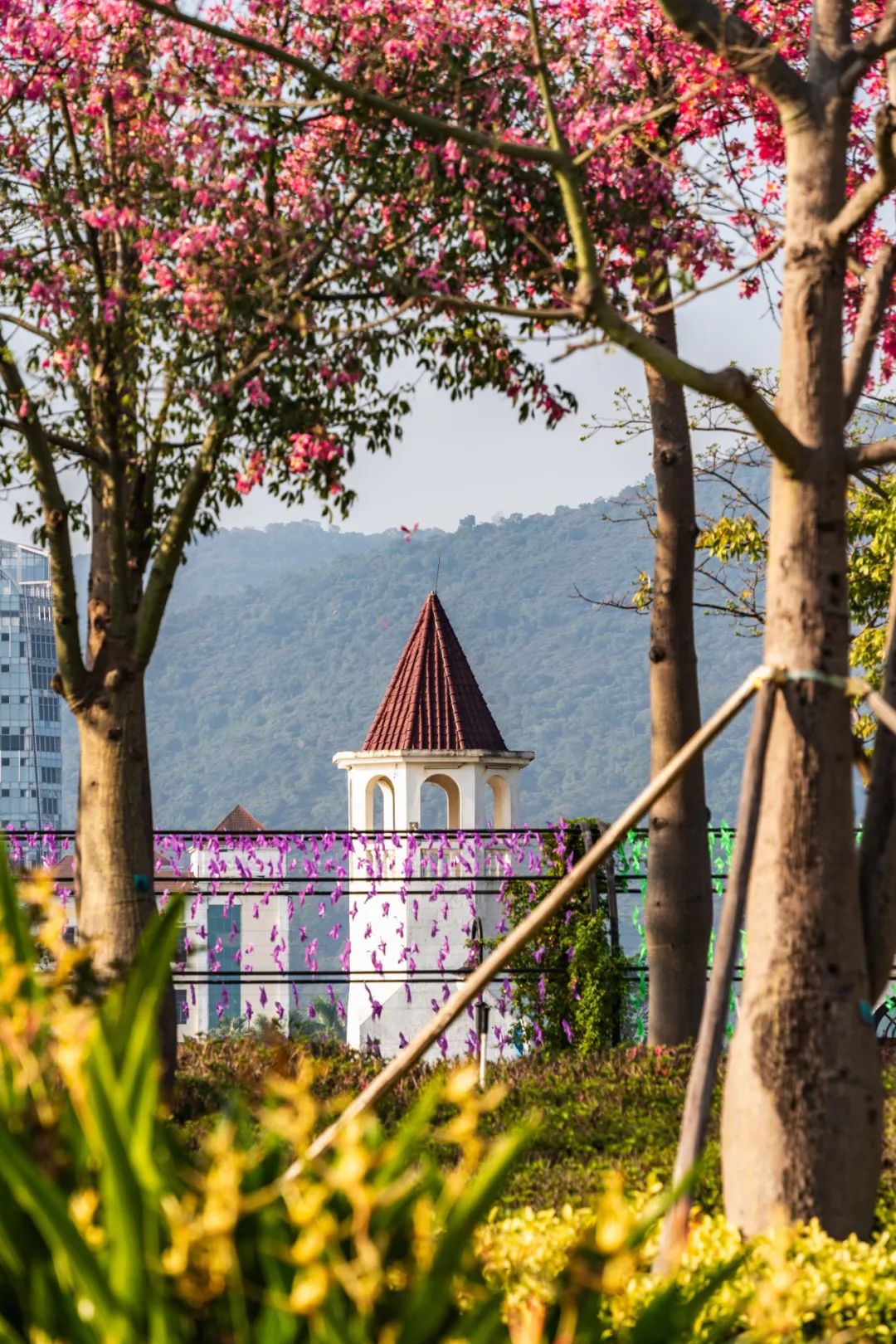 每年立冬前后,告別春夏雨季的橫琴花海長(zhǎng)廊便迎來了她一年之中最美麗的季節(jié)——美麗異木棉盛花期。絢爛的粉色花海以飽滿、茂盛、茁壯的姿態(tài)展現(xiàn)在市民游客們面前,海岸四處洋溢著浪漫與溫馨。
