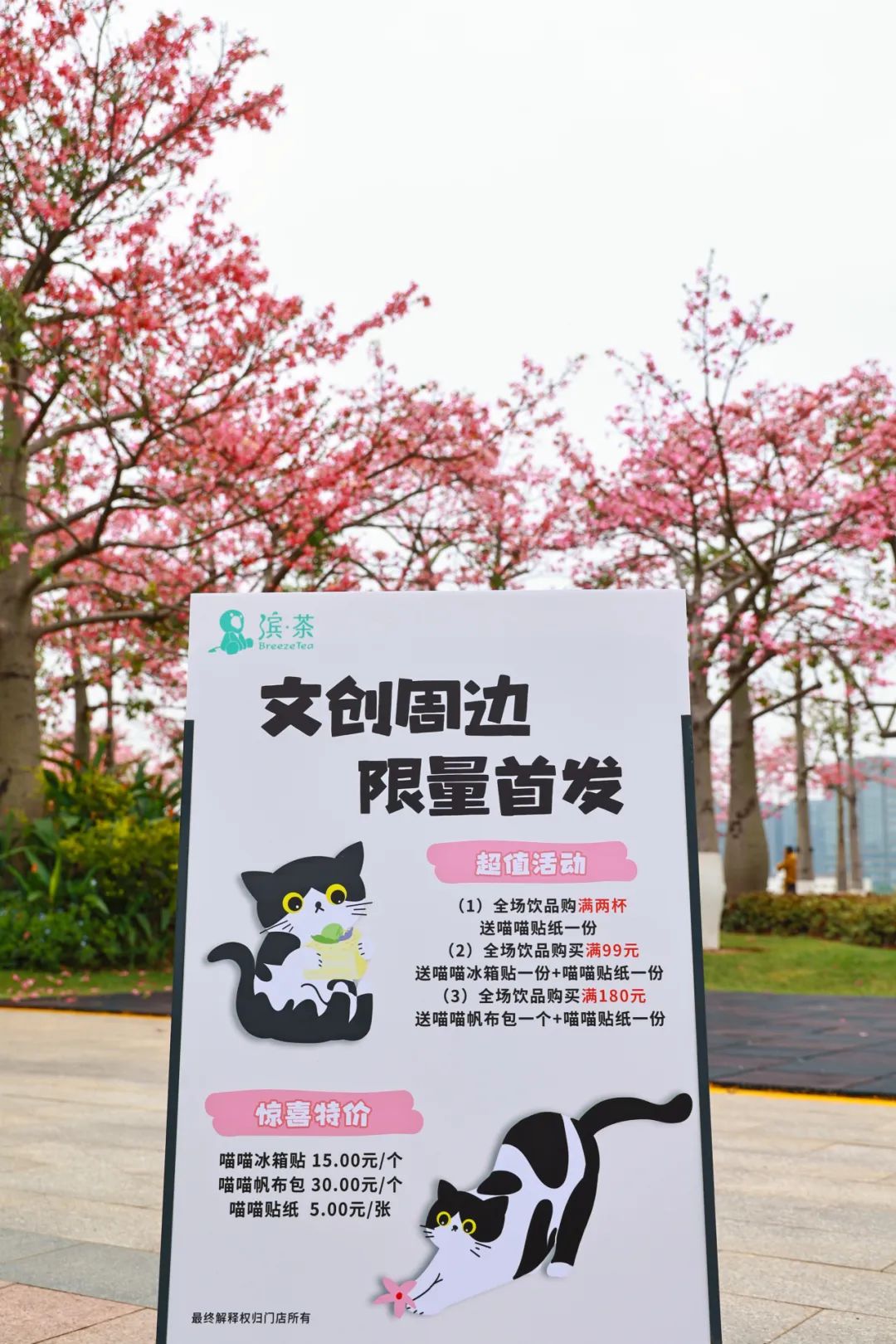 驛站自主品牌“濱·茶”更是與澳門高校學(xué)生設(shè)計(jì)工作室合作,聯(lián)手打造“貓店長(zhǎng)”花期限定主題文創(chuàng),用萌寵為花海注入更多靈氣,讓游客在被大自然治愈之余,也享受到小動(dòng)物帶來的舒心。