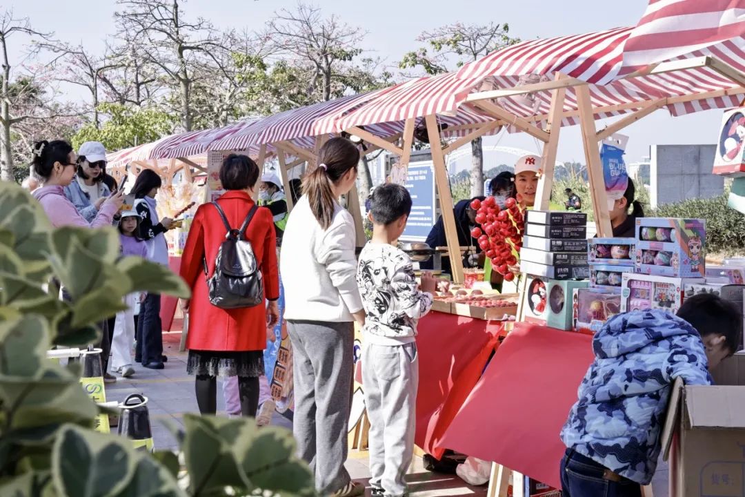 除此之外,每逢周末,一號(hào)、二號(hào)和三號(hào)驛站開展東灣墟市活動(dòng),斗門蓮洲鎮(zhèn)東灣村農(nóng)產(chǎn)品市集走進(jìn)花海,帶來優(yōu)質(zhì)的本地產(chǎn)綠色農(nóng)產(chǎn)品、特色手工糖水和農(nóng)副產(chǎn)品、非遺點(diǎn)心小吃等,吸引了大批市民游客上前詢問和購(gòu)買。游客在享受美景、體驗(yàn)美食之旅的同時(shí),亦促進(jìn)了鄉(xiāng)村振興與滿足城鎮(zhèn)消費(fèi)需求的良性循環(huán),鄉(xiāng)村市集在花海煥發(fā)出了新活力。