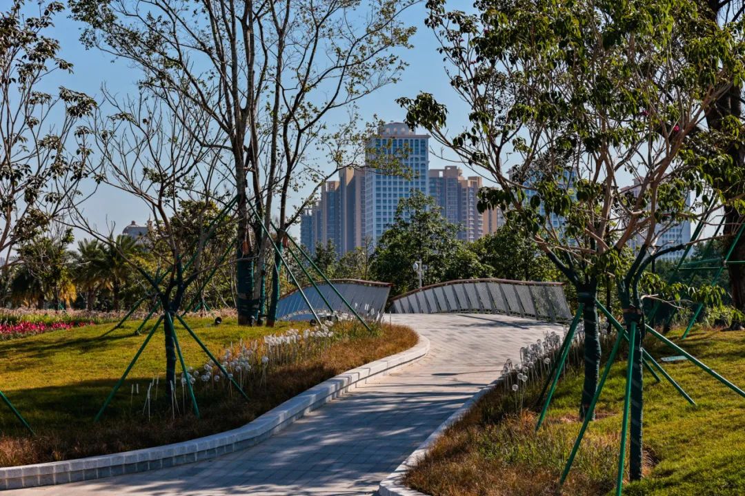 北岸利用現(xiàn)有的自然綠地,打造交通便利、內(nèi)外聯(lián)系通暢的濱水地帶,并結(jié)合“榕蔭椰影”的植物主題,新增多個林蔭平臺,提供自然與人文共享的活動空間。
