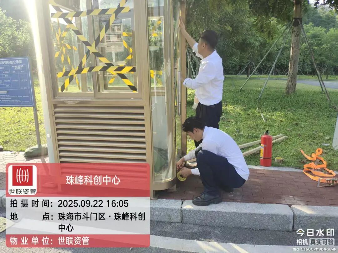 對珠光集團(tuán)旗下園區(qū)內(nèi)的樓宇廣告牌、生命通道、應(yīng)急避難場所等防汛防風(fēng)部位的隱患全面排查和清理。要求應(yīng)急人員全部到崗到位,對防汛物資,應(yīng)急物資準(zhǔn)備情況以及值班、搶險隊(duì)伍備勤情況和園區(qū)建筑物排水系統(tǒng)、消防系統(tǒng)、監(jiān)控系統(tǒng)、外立面及門窗系統(tǒng)進(jìn)行全面排查。做好園區(qū)企業(yè)客戶的安全保障工作,同時對園區(qū)企業(yè)和商戶盡數(shù)告知和勸導(dǎo),堅(jiān)決落實(shí)“五?!贝胧A(yù)備應(yīng)急避難場所。